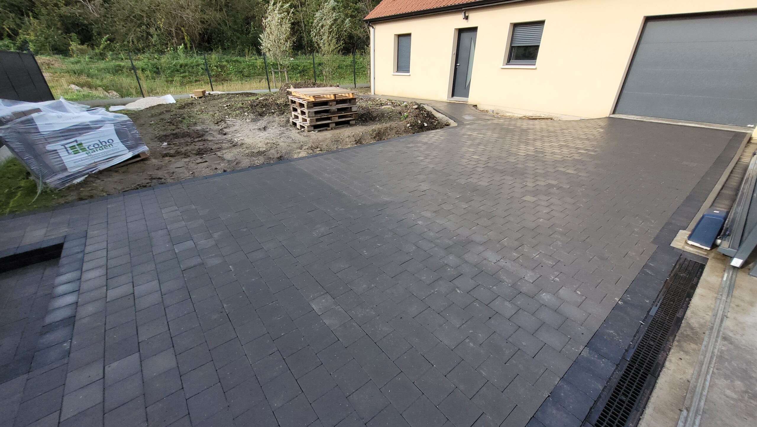 – Septembre 2024 : Création d’une allée de garage de 65m² en pavés béton autobloquants